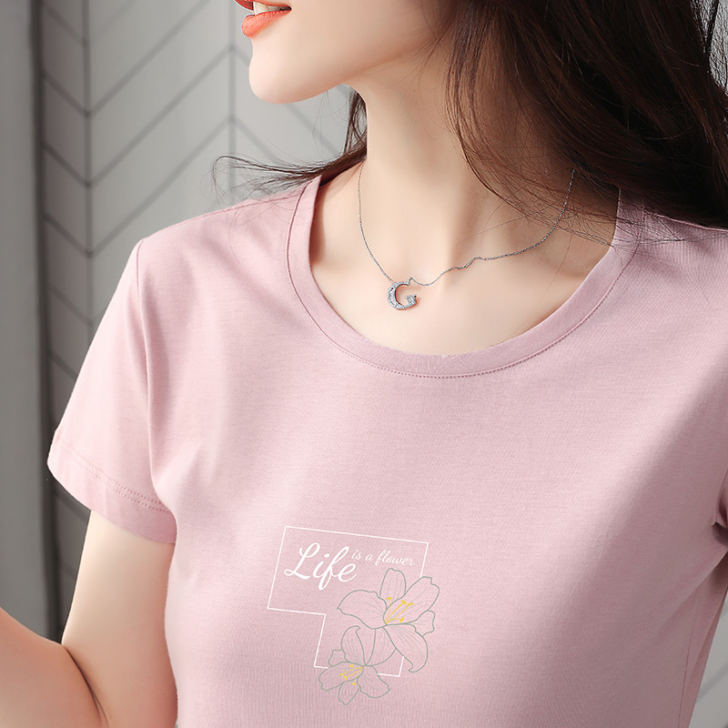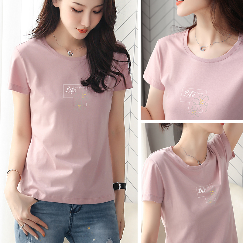 Pink Short Sleeves Women 2022 Spring Summer New Blouses Pure Cotton slim Han version swarm up for about 100 hitch printed T-shirt