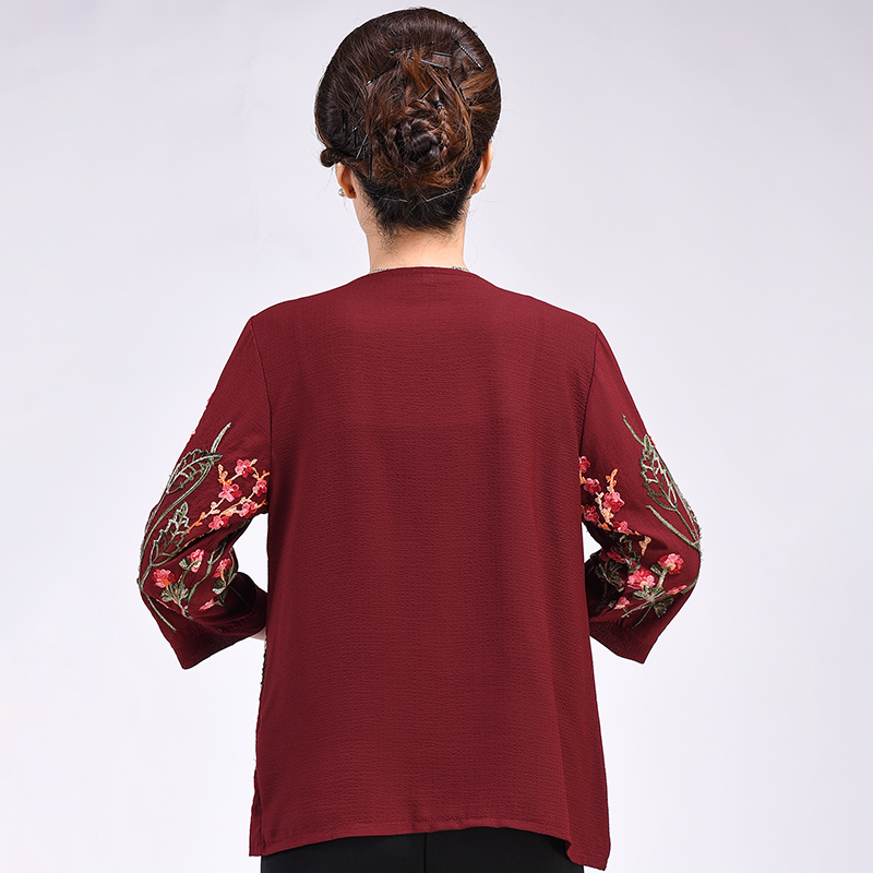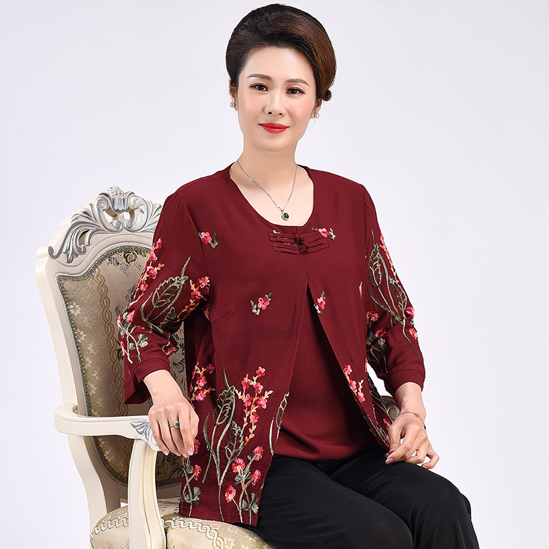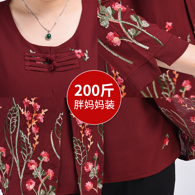 Middle - aged women summer wear plus loose two pieces of blouse 200 pounds fat mother embroidered shirt