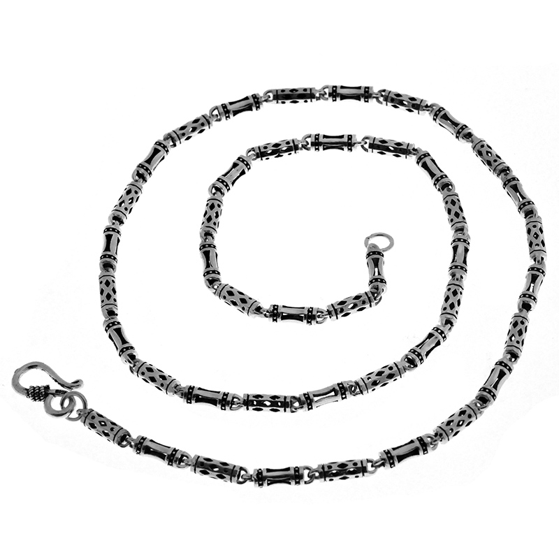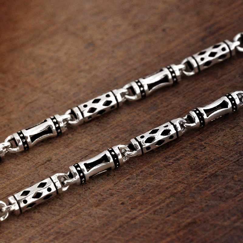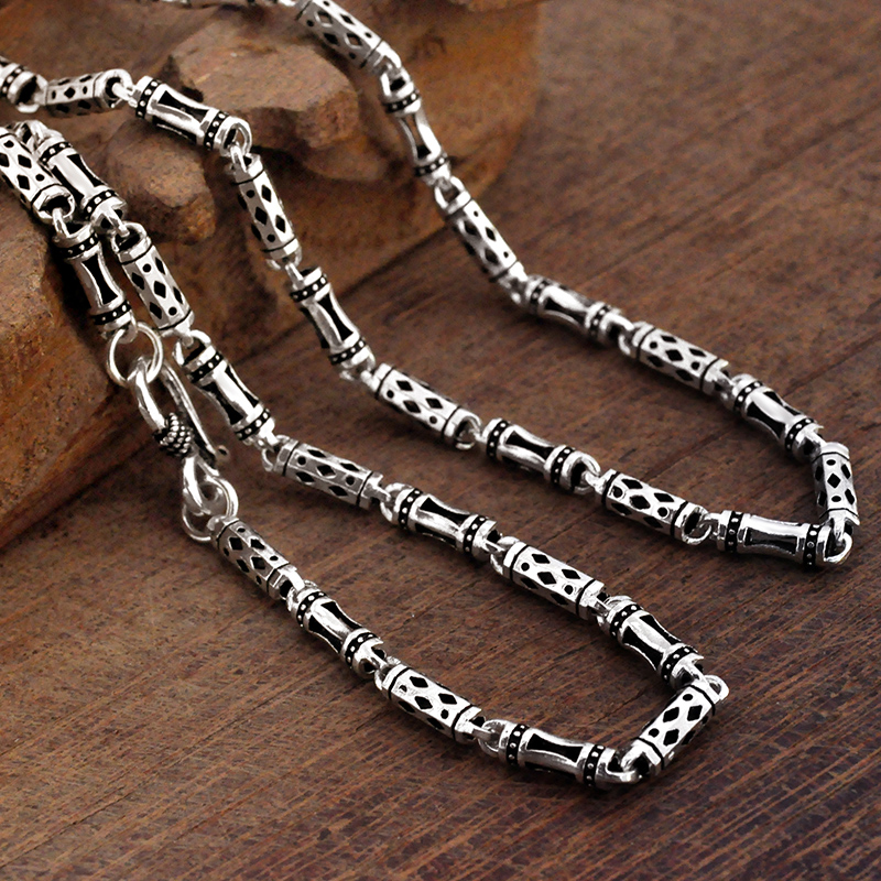 S925 Pure Silver Bamboo Festival Necklace Boomer Personality 100 Hitch Necklace Retro Thai Silver Couple Fashion Men And Women Lock Bones Chain