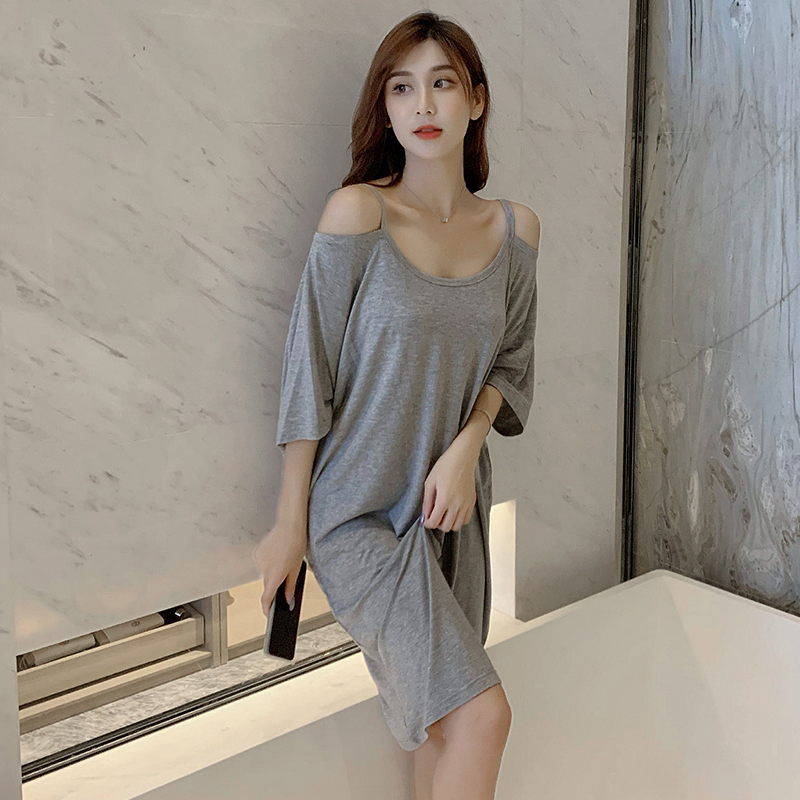 Nightdress female summer modal princess style private house hot suspender sleeves off-shoulder court sexy pajamas skirt summer