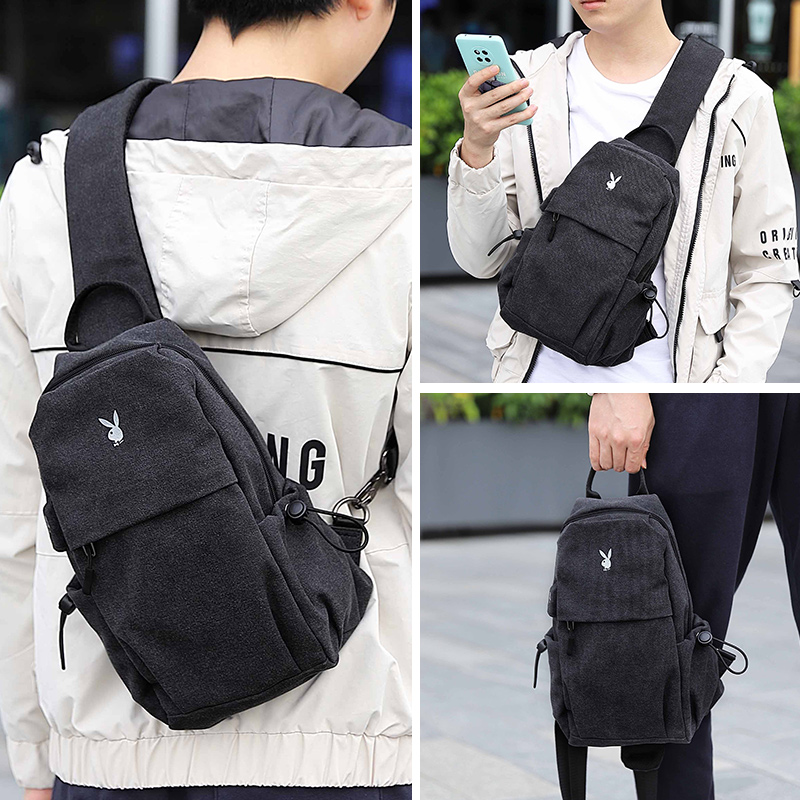 Playboy men's messenger bag canvas casual men's bag multi-function chest bag shoulder bag backpack tide brand small bag