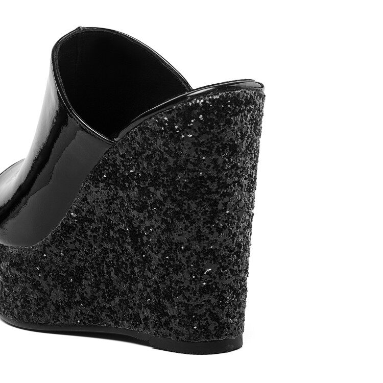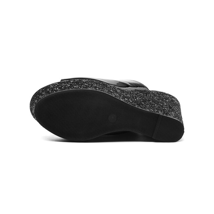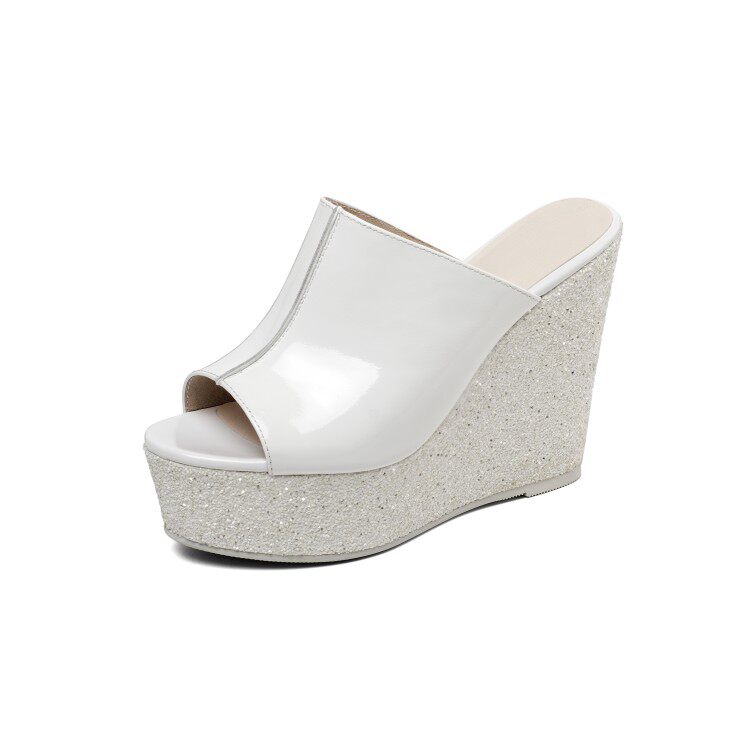 Full leather hate the sky high 11cm wedge slippers women's outer wear spring and summer high-heeled thick-soled sandals patent leather flip-flops white
