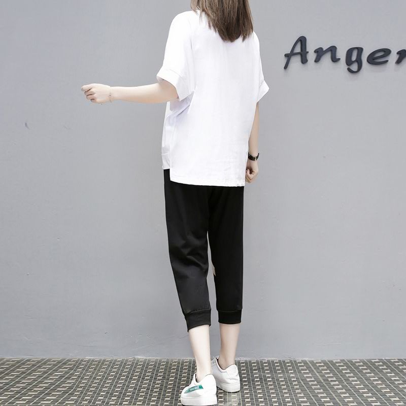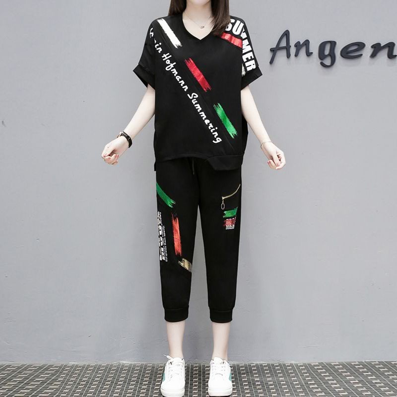 Plus-size women's clothing 2023 summer new fat mm casual loose sports suit female cover belly slimming two-piece trendy