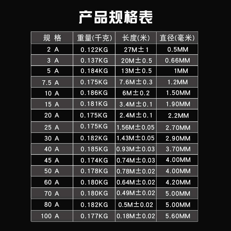 2A Length About 27m3A Length About 19 7m5A Length About 12 8m7 5A Length about 7 6m10A Length About 5 9m15A Length Large