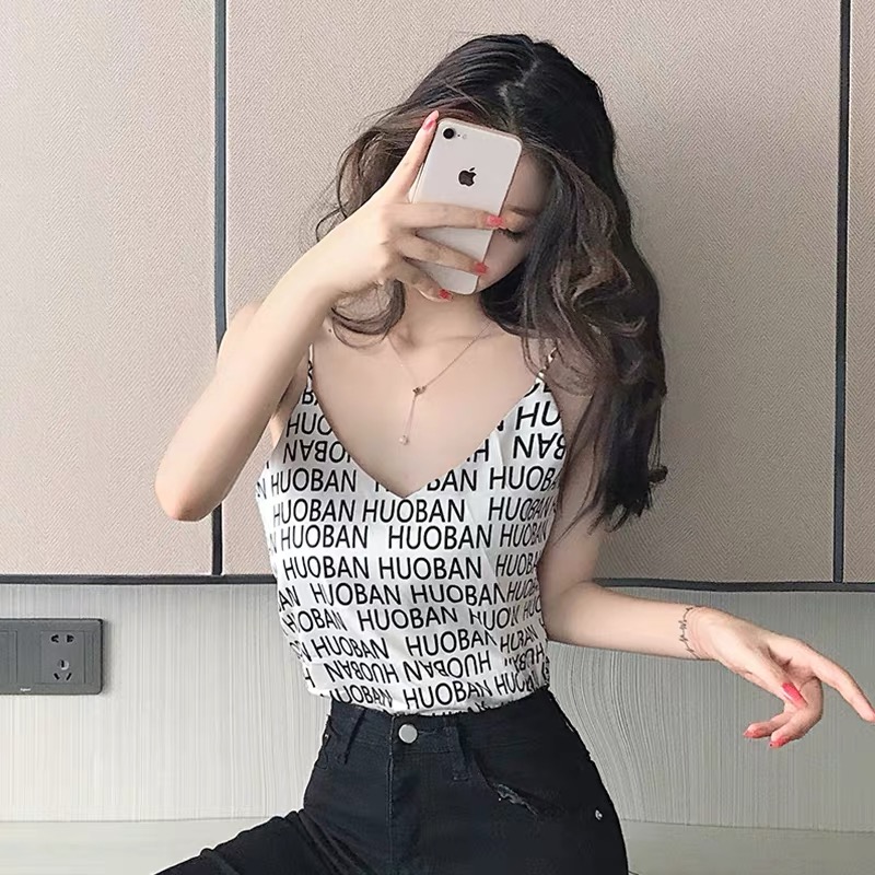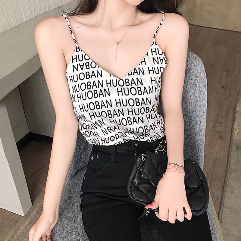 Acetate satin chic small camisole women's summer thin section outer wear suit inner bottom sweet hot girl French top
