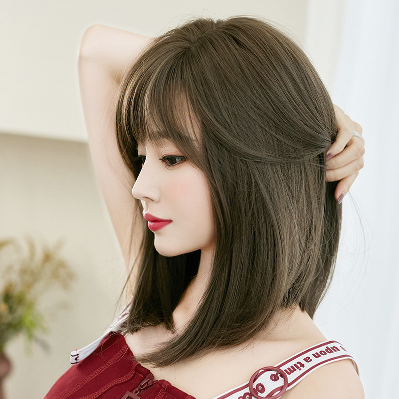 First love head short wig female medium short hair Korean full headgear natural bobo bob head black medium long hair straight hair