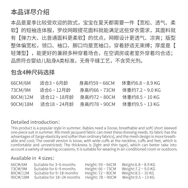 Baby Connected Clothes Short Sleeve Summer Small Cotton Net Eye Toddler Half - sleeve Hardclothes 1 year old baby summer dress 2