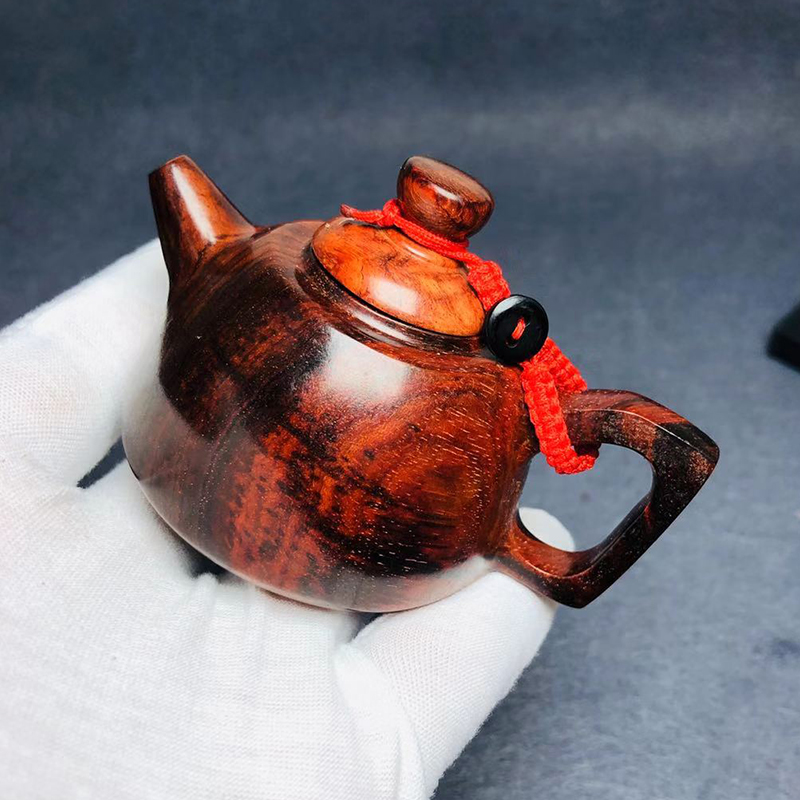 Indian small leaf purple sandalwood to make pot red wood old stock craftsmanship gift swaying teapot men's personal solid wood text playing handlebar pieces
