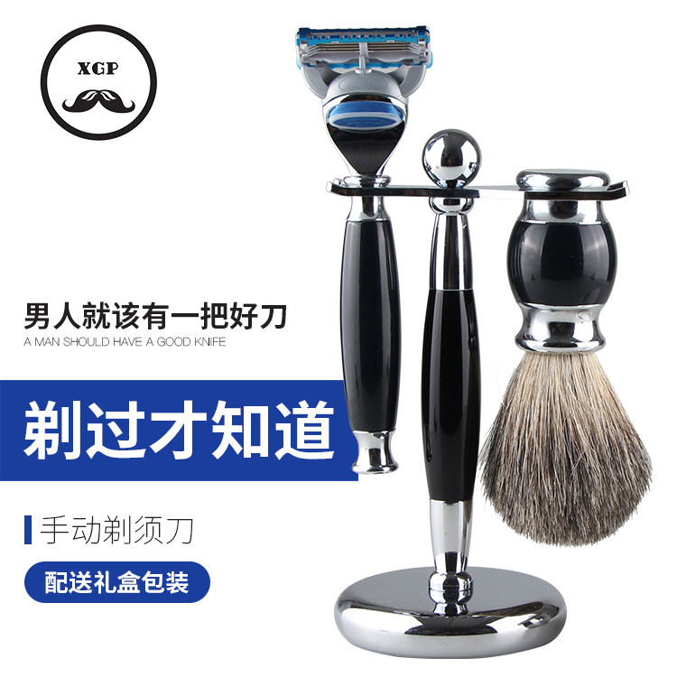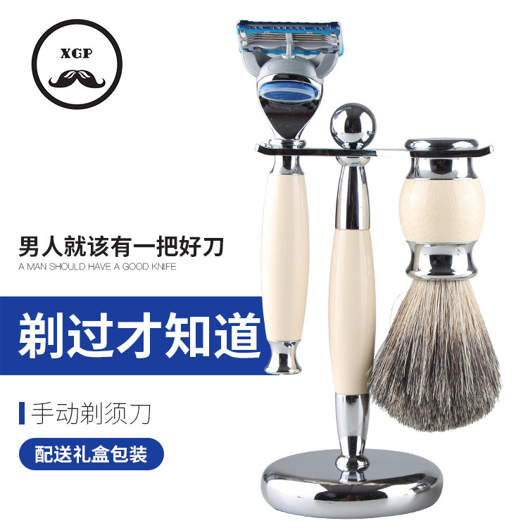 Manual shaving knife set imitating wooden resin razor retro belt stent soap razor sending husband