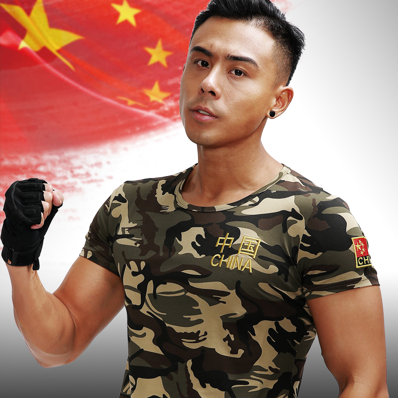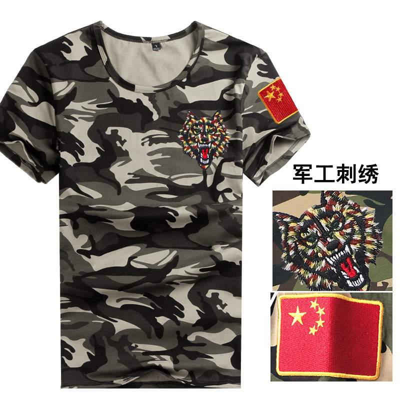 Summer embroidery China National T-shirt special forces camouflage short-sleeved repair tight clothes men's elastic cotton war wolf