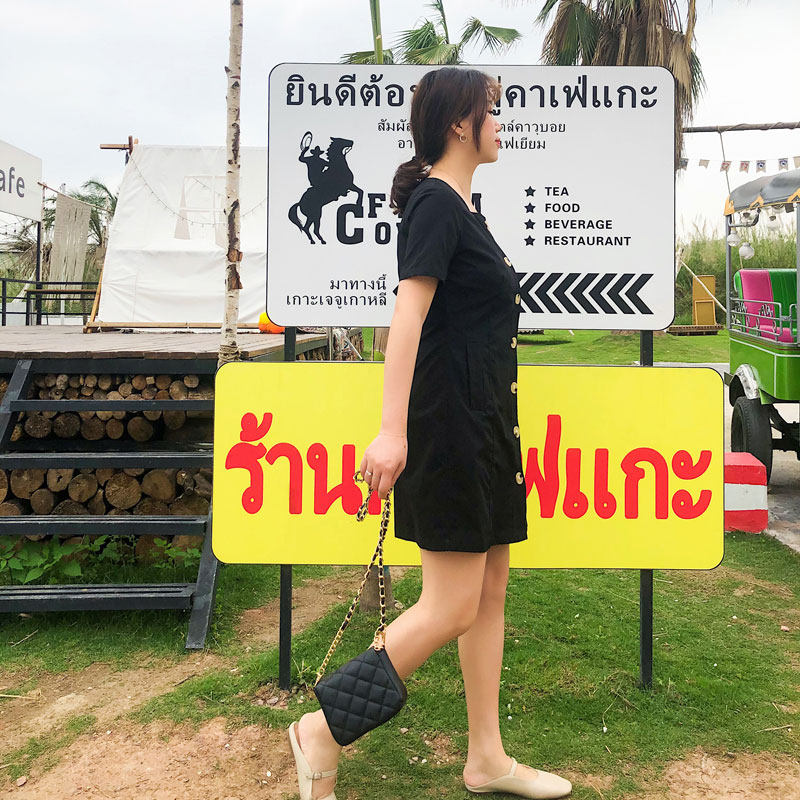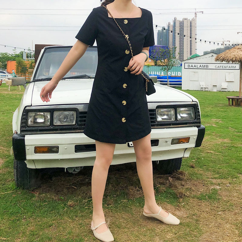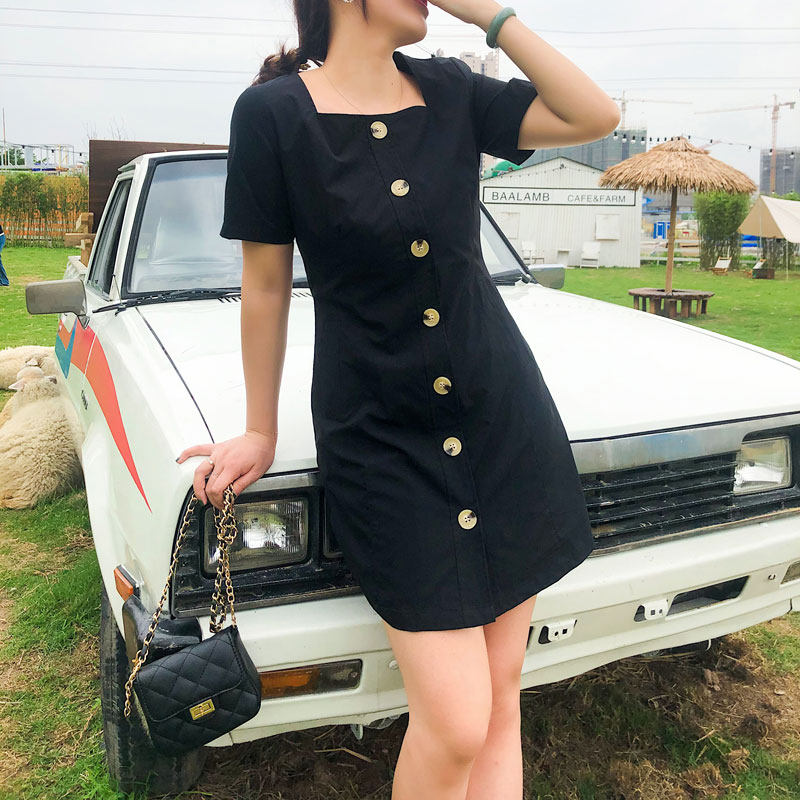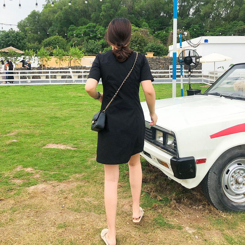 Meet the big yard women's clothes 2022 new waist - collar small black dress fat mm slim skinny short sleeve dress