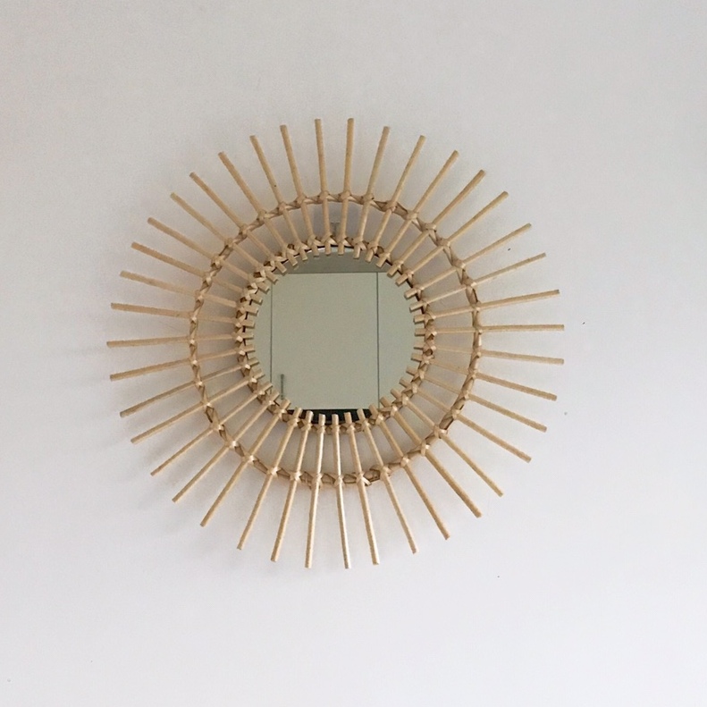 New rattan make-up mirror Creative art decoration round mirror Bed and breakfast living room entrance wall wall decoration hanging mirror