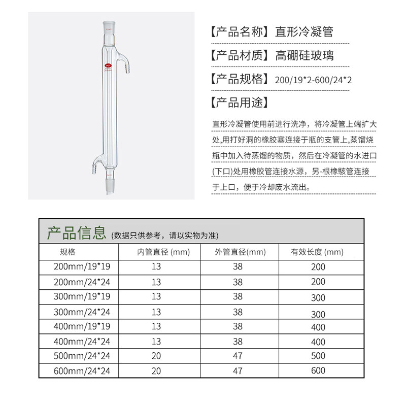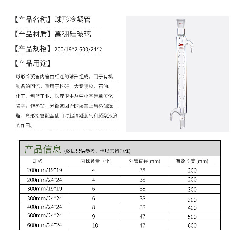 Serpentine condensing pipe straight condensing pipe spherical condensing pipe reflux device standard mouth chemical laboratory equipment 200300400500600m m