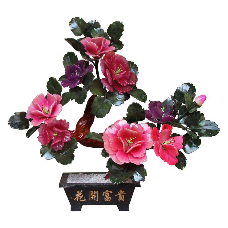 Jade engraving Mudan Flower Bonsai Living room Xuanguan New Home Accessories Office Home Bedroom Creative Pendulum
