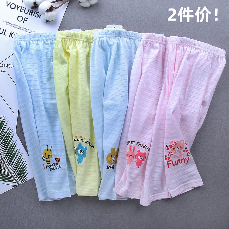 2 Pieces Price Children's Bamboo Joints Cotton Sleeping Pants Male Girl Baby Pure Cotton Home Lap Pants Baby Large PP Air Conditioning Pants 1