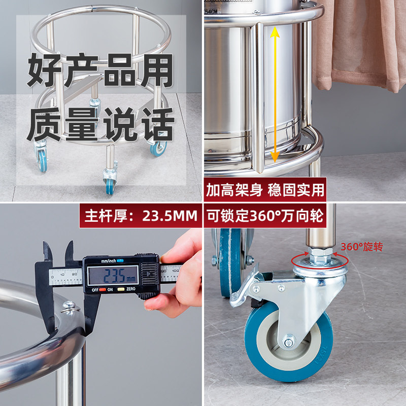 Thickened stainless steel soup barrel rack insulated barrel rack with wheel trolley cutting board rack open bucket frame with a high shelf