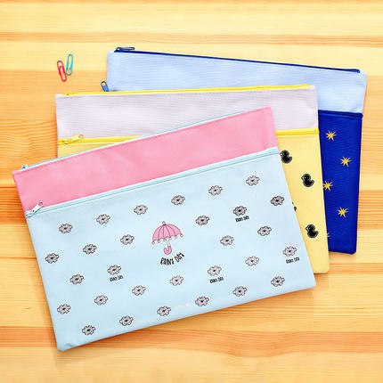 Deli 72356 double bag student storage test paper canvas data finishing bag cute cartoon ticket A4 zipper bag