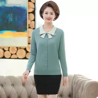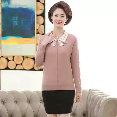 Middle-aged mother spring and autumn clothes knitted base shirt coat new short line clothes middle-aged women T-shirt small sweater thin sweater