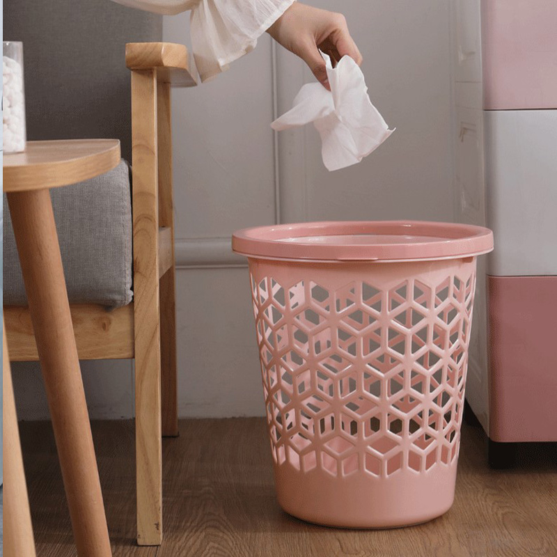 Home Trash Can Home Toilet Makeup Room Living Room Creativity Hollowed-out Large Number Bedroom Office With Press Circle Wastepaper