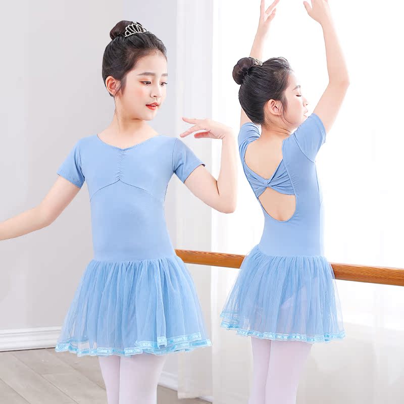 Children's dancing girls' practice clothes for young children practice suit girl's body dress pink yarn dress folk dance dress