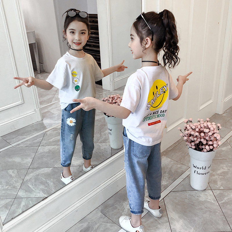 Net red women's children's clothing summer suit 2020 new foreign school children's children's children's girls summer clothes tide ten-year-old children