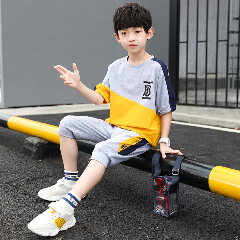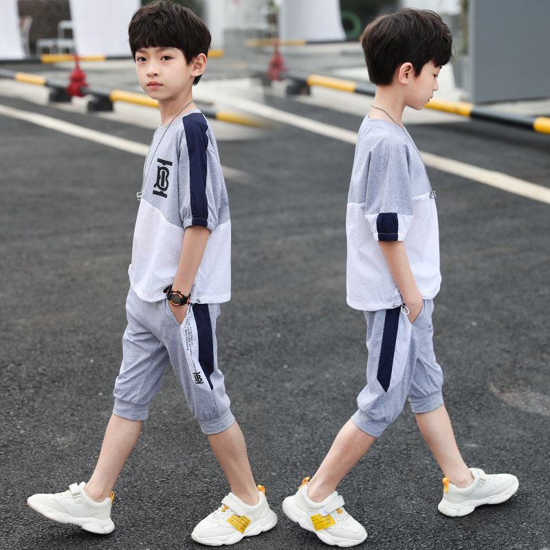 Boys summer suit 2020 children's short sleeve sportswear two-piece cotton boy handsome tide casual children's clothing