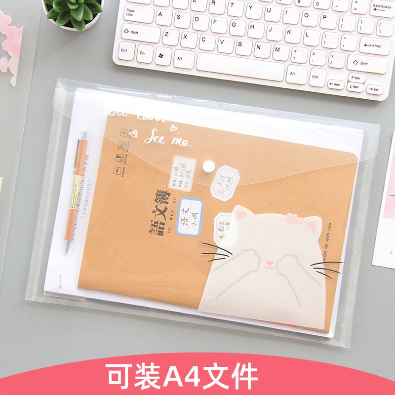 File bag Transparent A4 South Korea Xiaoqing New cute press buckle student with dress paper information stationery cartoon scroll subfinishing containing archive large capacity multilayer classified high school student Jane approximately Korean version