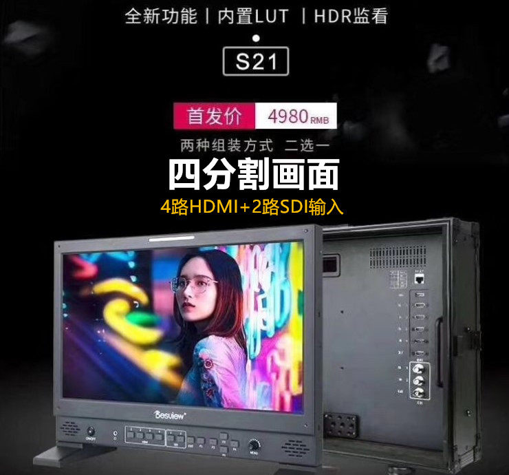 100 Vision Pleasing S21 Director HDR Monitor Built-in Lut 21 Inch Four Way Four Picture Base Multi-Machine Bits HDMI