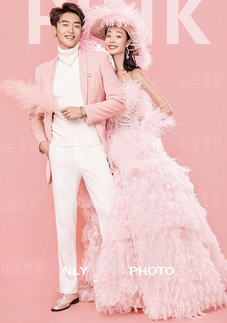 New location travel photography couple photo photo pink feather wedding bandeau dress Photo studio theme clothing
