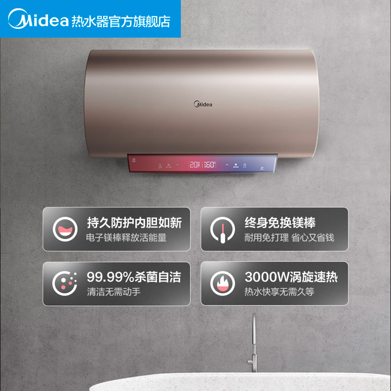 Midea electric water heater 60 80 liters home bathroom water storage type quick heat bath liner no-clean smart TG8