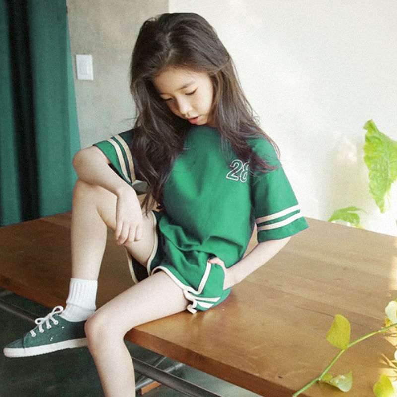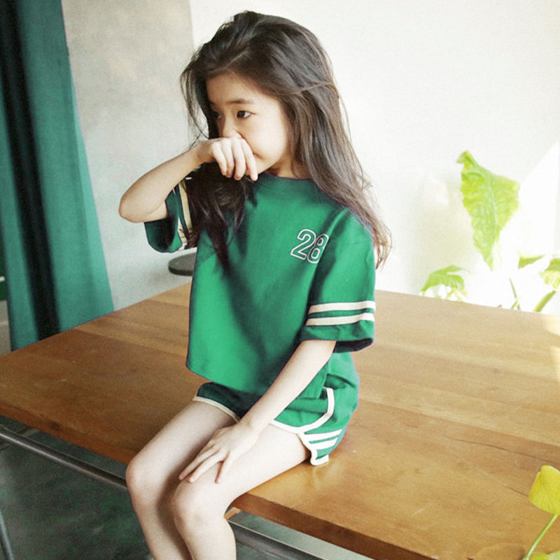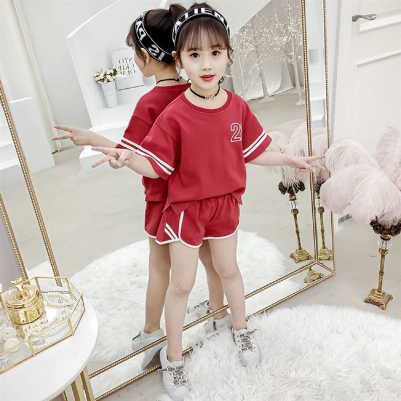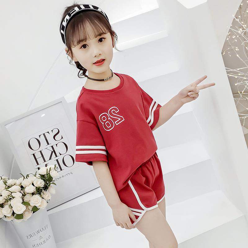 Children's Fashion Summer Clothing Online Red Girl Sports Suit CUHK Kid Short Sleeve Shorts Child Foreign Air Girl Two Sets-Taobao