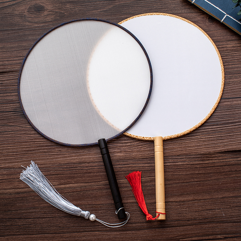 Silk cooked silk cloth palace fan round fan embroidery fine brush hand painting blank group fan diy fan calligraphy French painting fan
