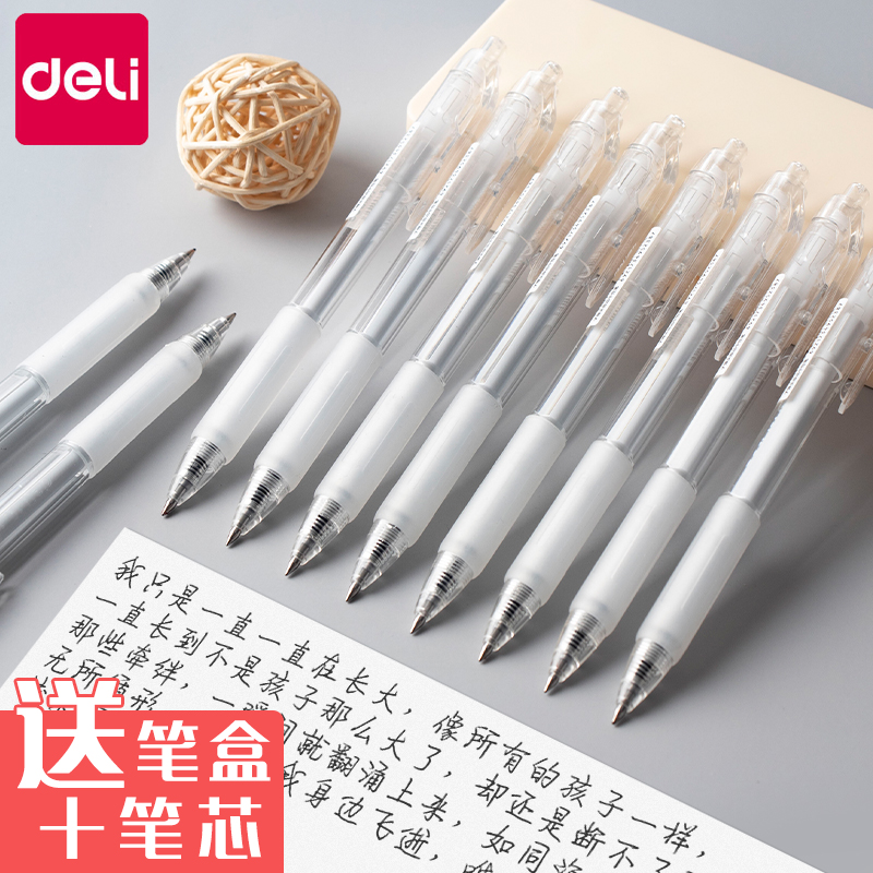 Del transparent press neutral pen black students with 0 5mm simple fresh literary notes push pen test special press pen signature pen ballpoint pen stationery office supplies black pen