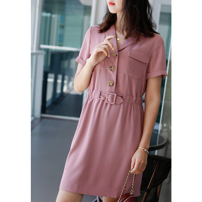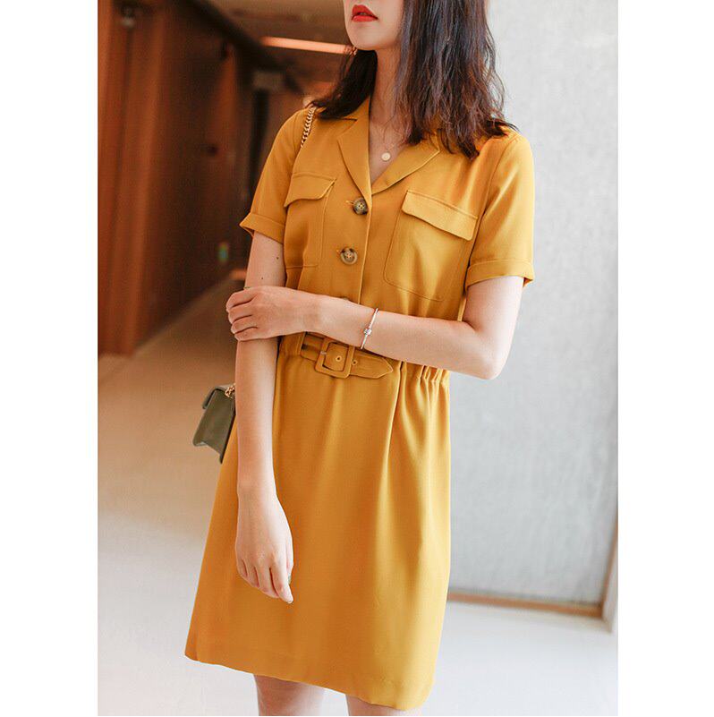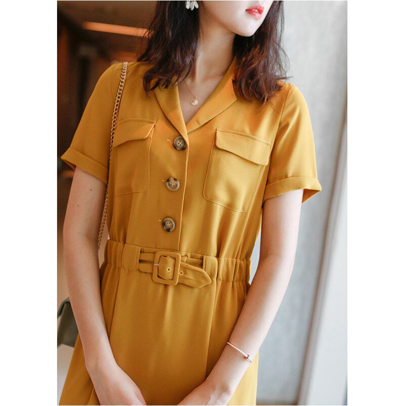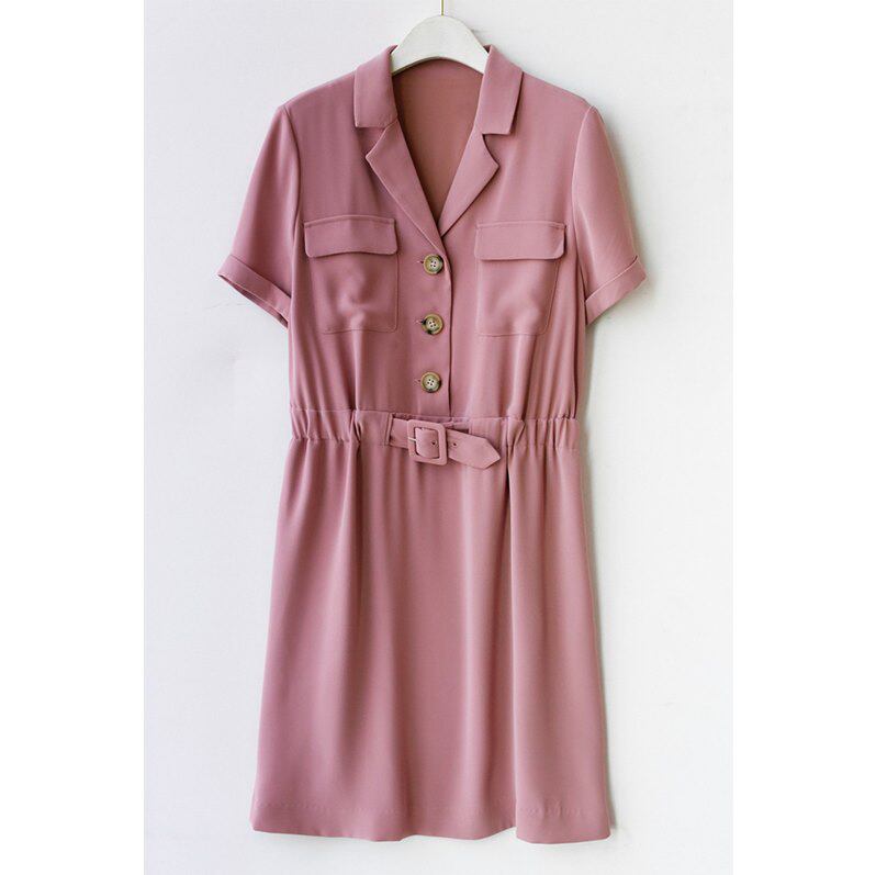 Breaking Code Special 22 Years Summer Temperament Tooling Wind Suit Collar Retro Pocket Accessories Slim Fit Slim Short Sleeve Ocean Dress