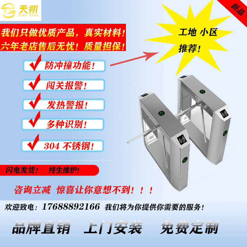 Three-roller gate walkway access control attendance system fingerprint door Ban Machine Face Recognition Wind Scenic Spot Check Ticket Construction Site Door Ban