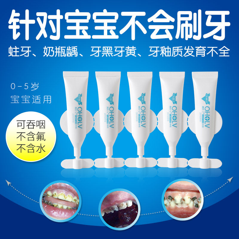 Aole V0-3 years old baby tooth gel Fluoride-free swallowable baby anti-tooth decay children's toothpaste to remove teeth black teeth yellow