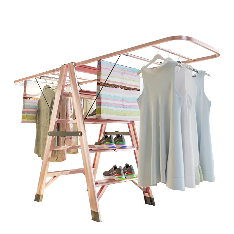 Versatile ladder clothes hanger light and luxurious folding multipurpose telescopic home indoor creative aluminium alloy thickened herringbone ladder