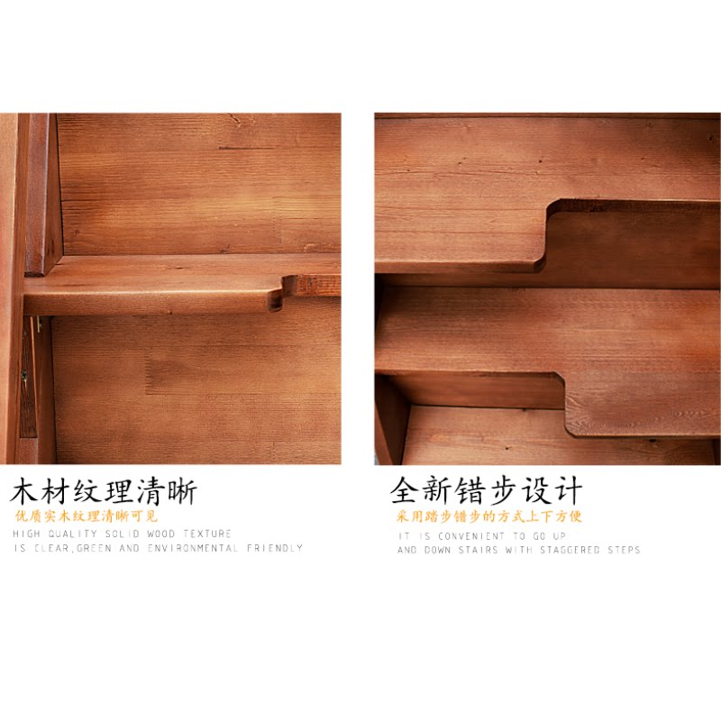 Customizable small space wooden stairs left and right foot attic stairs indoor home staggered step ladder solid wood straight ladder