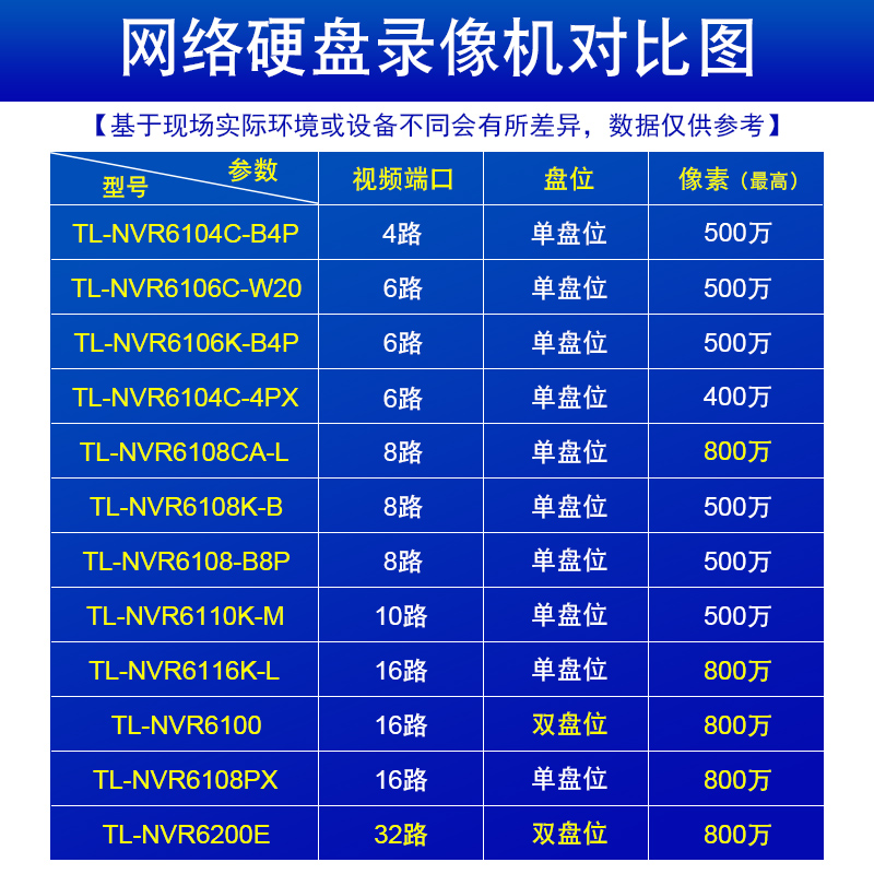 (4ch) (4 PORTS POE) NVR6104C-B4P (6CH Wireless) (5MP) NVR6106C-W20 (8CH) (8MP) NVR6108CA-L (8CH) (8-port POE) NVR6108-B8P (16CH) (Dual-bay) (8MP) NVR6216-L (16CH) (Single-Disc) (8MP) (8MP) NVR6100E (32CH) (Dual-Disc) (8MP)NVR6200E (32CH). (4 bays) (8MP) NVR6432 (32ch) (8-bay bit) (8MP) NVR6832 (64ch) (8-bay) (8-bay) (8MP) NVR6800 TL-NVR6106K-B4P (with 2TB HDD) TL-NVR6108-B8P (with 2TB HDD) 1TB HDD 2TB HDD 4TB HDD 6TB HDD 8TB HDD (6CH) (4MP) NVR6104C (6CH) ( 4-port POE)(45W)NVR6104C-4PX (6ch)(4-port POE)(45W)NVR6106K-B4P (10-way)(5MP)NVR6110K-M (16CH)(8MP)NVR6116K-L (16CH)(8-port POE)NVR6108PX (24ch)(16-port POE)(8MP)NVR6216PX