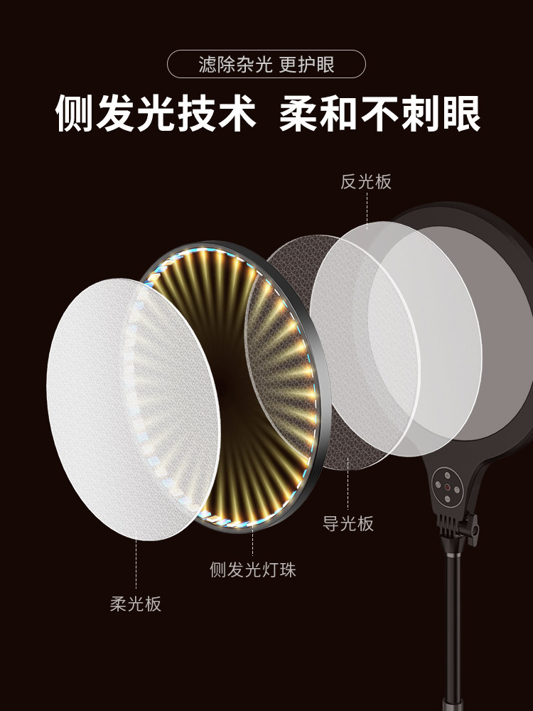 Play in Full Screen Spotlight Live Bracket Round Soft Light Tender Skin Beauty Lamp Anchor Net Red Special Self-Photo Shoot Spotlight Indoor Desktop Phone Gourmet plant Photograph led Ring light