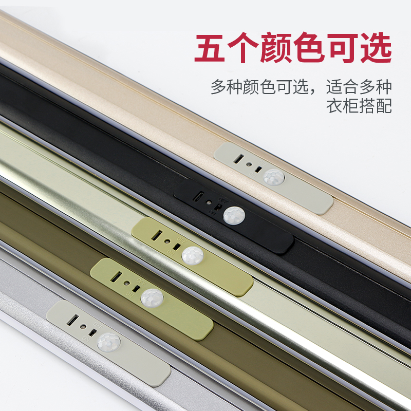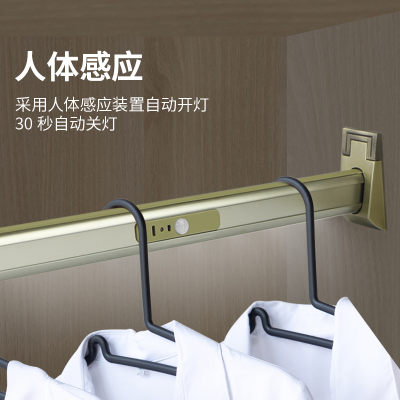 Wardrobe with light clothes hanging rod smart human body induction LED light pole wardrobe cabinet USB charging clothes through pole single pole