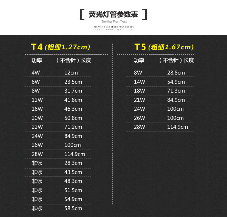 T4 6W (without needle 23 5CM)2pcs T4 8W(without needle 31 7CM)2pcs T4 12W(without needle 41 8CM) 2pcs T4 16