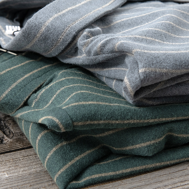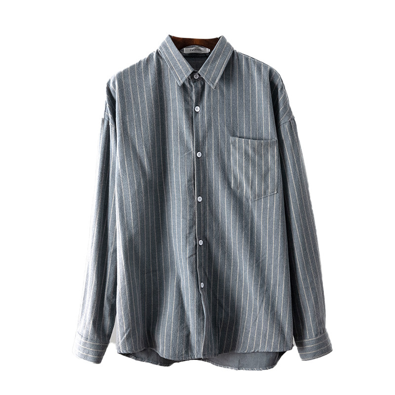 T2822 Harbor Tides Retro Vertical Stripes ~ Loose Shirt Men Spring Autumn New 100 Hitch Long Sleeve Shirt Boomer