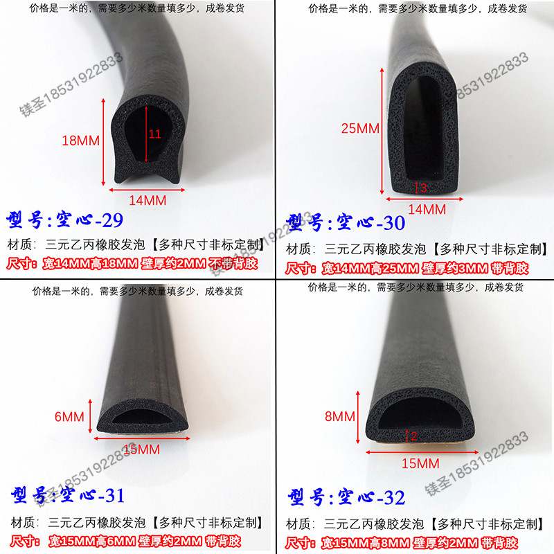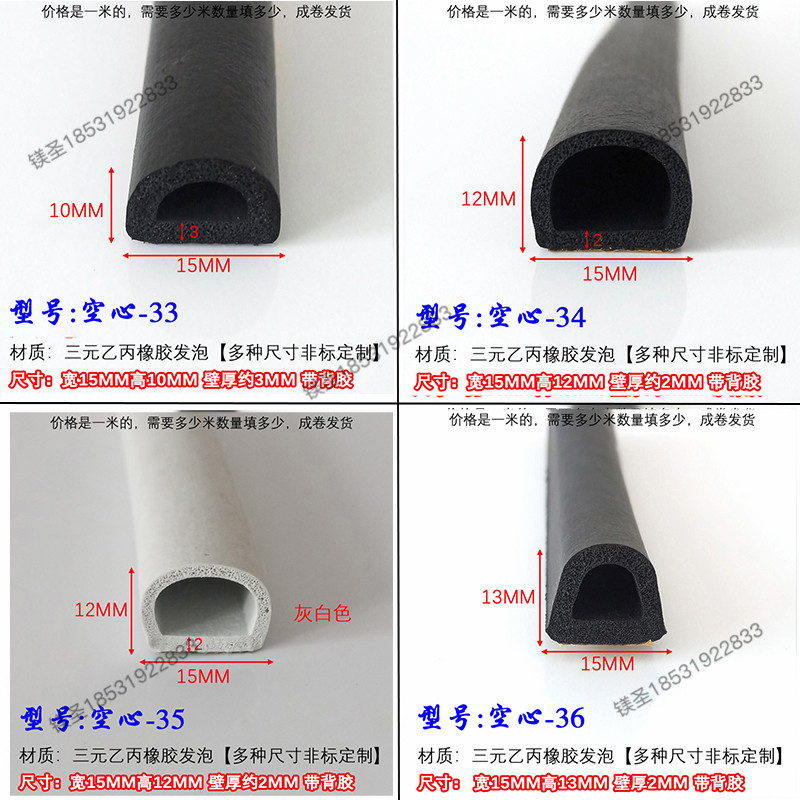 D type hollow rubber strip self-adhesive rubber seal distribution box cabinet electrical waterproof car door bar 15*12mm