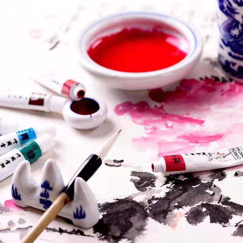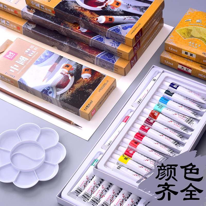 Chinese painting pigments 12 colors 18 colors 24 colors adult beginners ink painting material tool set professional meticulous painting primary school students introductory brush single mineral painting material full set of four treasures of the study