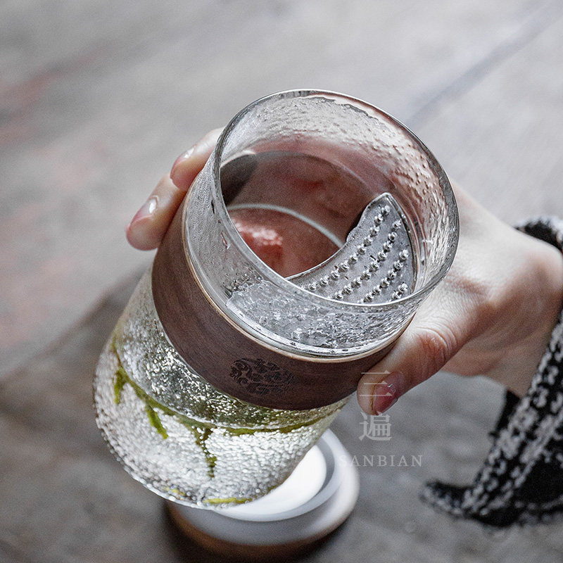 Hammer pattern glass Crescent green tea cup Filter with lid Anti-scalding flower tea cup Tea water separation Tea cup Drinking tea cup