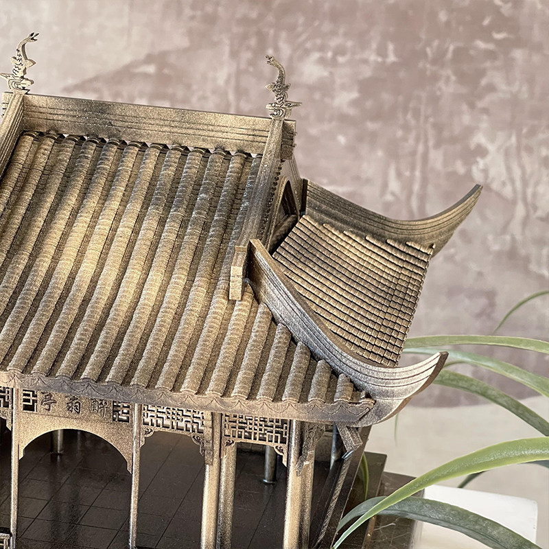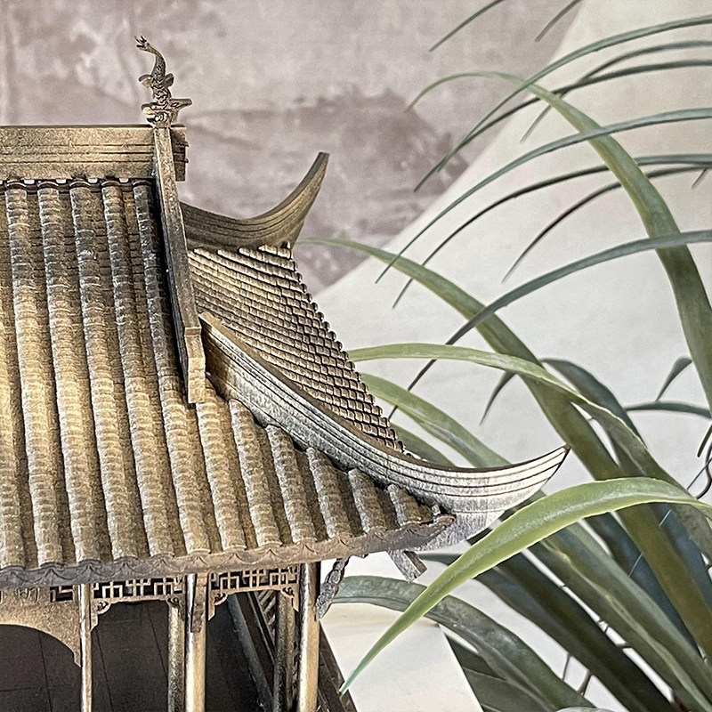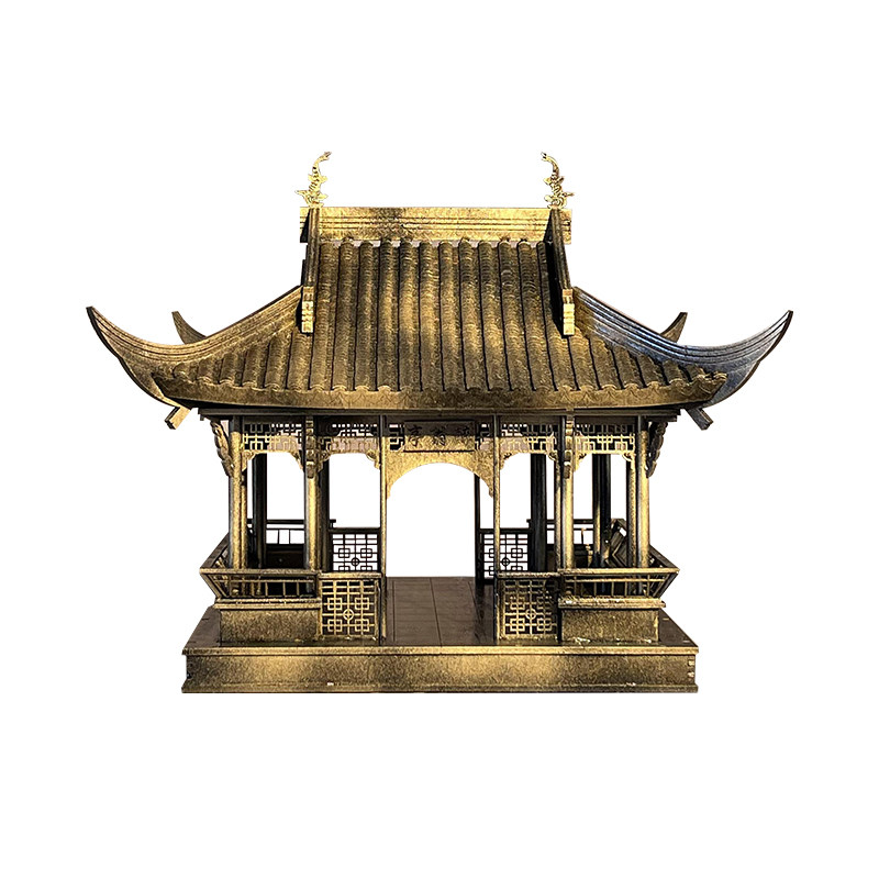 Bronze new Chinese Zen wood mosaic Ancient building pavilion ornaments Hotel sample house Display center Lobby soft decoration