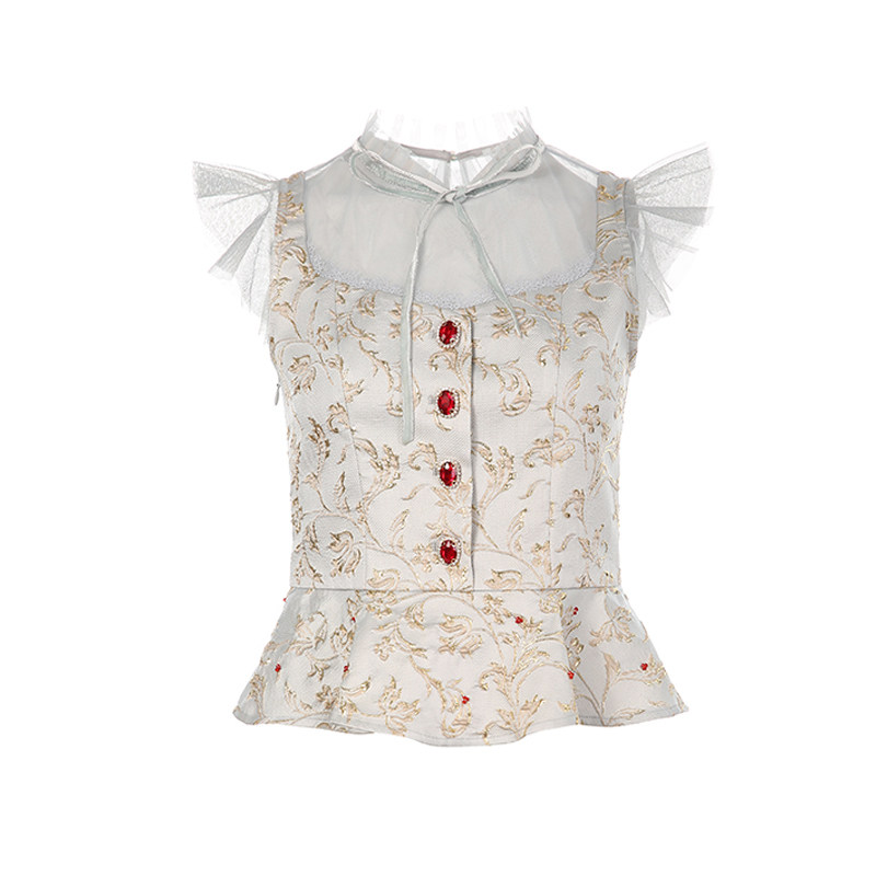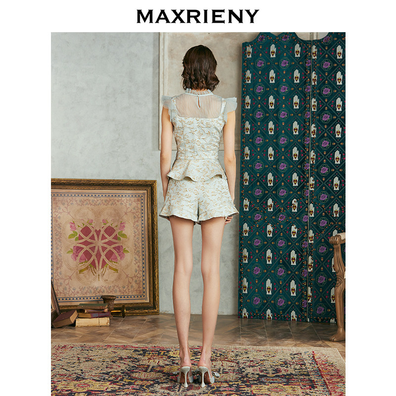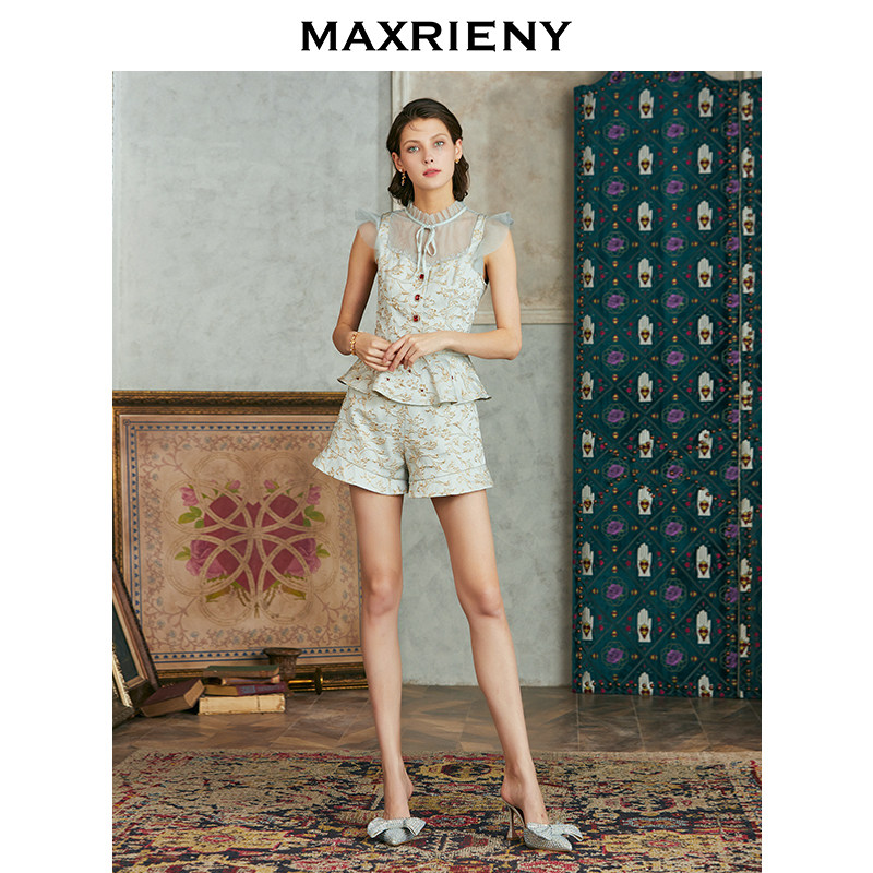 MAXRIENY2020 summer new vintage round neck printed lace top short sleeveless skirt pendant shirt women's Western style