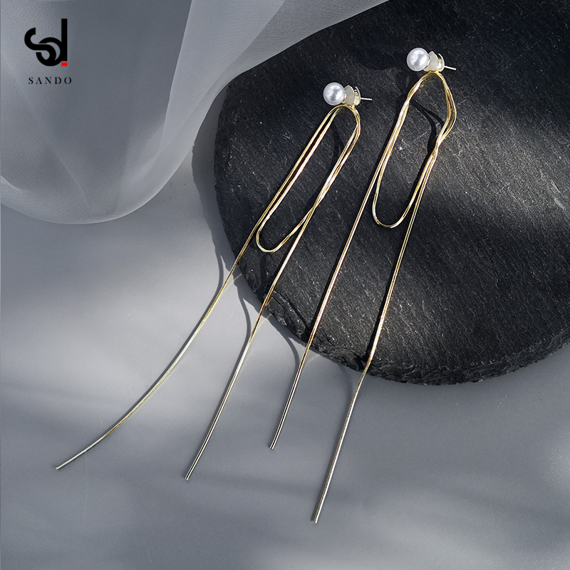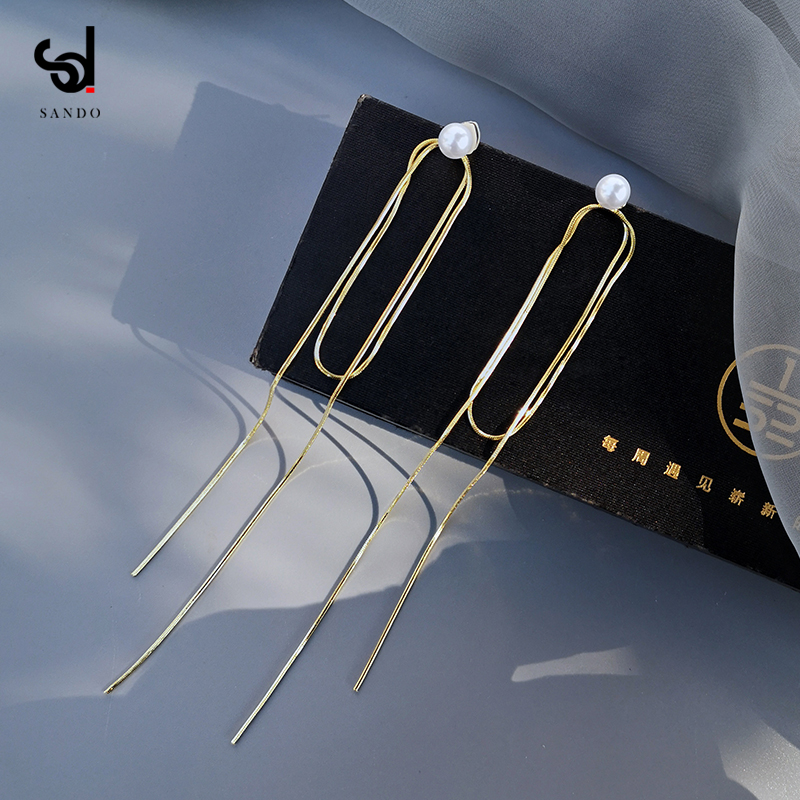 Ultra-long-style pure silver streaming suearrings female tennis red temperamental round face with thin ear necklace 2021 New wave pearl earrings