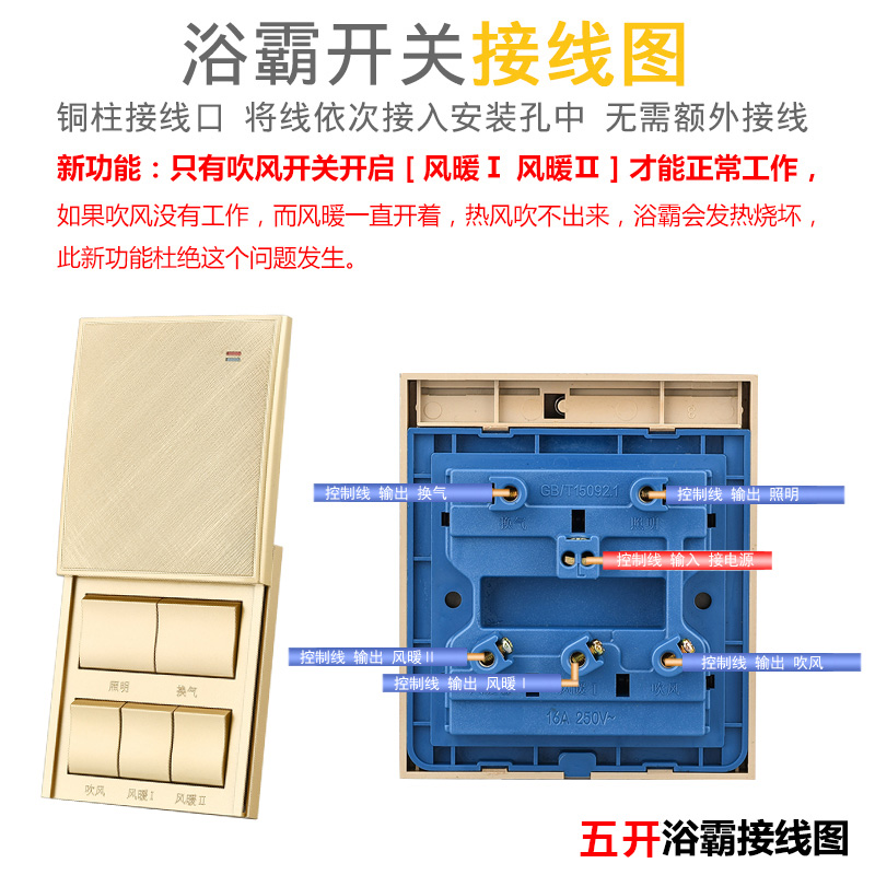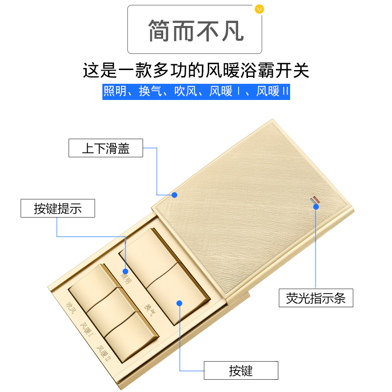 Household five-open gold bath master switch 5 five-in-one slide cover bathroom toilet machine universal air heating waterproof panel